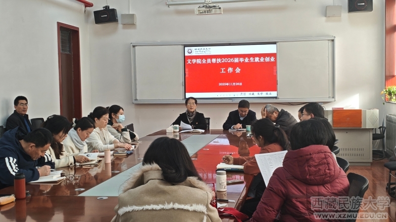 为深入贯彻落实自治区党委、政府和学校关于高校毕业生就业工作的决策部署,推进2026届毕业生就业工作,11月26日下午,文学院召开2026届毕业生全员帮扶就业工作推进会。院党委书记任秀丽主持会议,班子成员及全体教职员工参会。