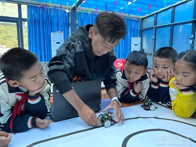 近年来,西藏自治区多措并举,重点推进教育事业发展,科创教育成为乡村小学的智慧之光,点亮了新西藏现代化进程中的智能未来。因西藏乡村科创教育师资不足、硬件资源短缺,西藏乡村孩子在科创学习领域仍有不足。西藏民族大学教育学院的师生敏锐地察觉到了这一问题,一支由教育技术学、小学教育等多专业学生组成的朝气蓬勃的团队,怀着对教育事业的热忱与担当,立足“我们在一起”这一温暖而又充满力量的教育品牌理念,发起建设了“雪域小智——西藏乡村科创教育品牌”项目。他们如同勇敢的开拓者,以“AI智能体+ 本土化资源+ 多维实践”的三维闭环体系,通过多次实践,为西藏乡村孩子点亮璀璨的科创之光。